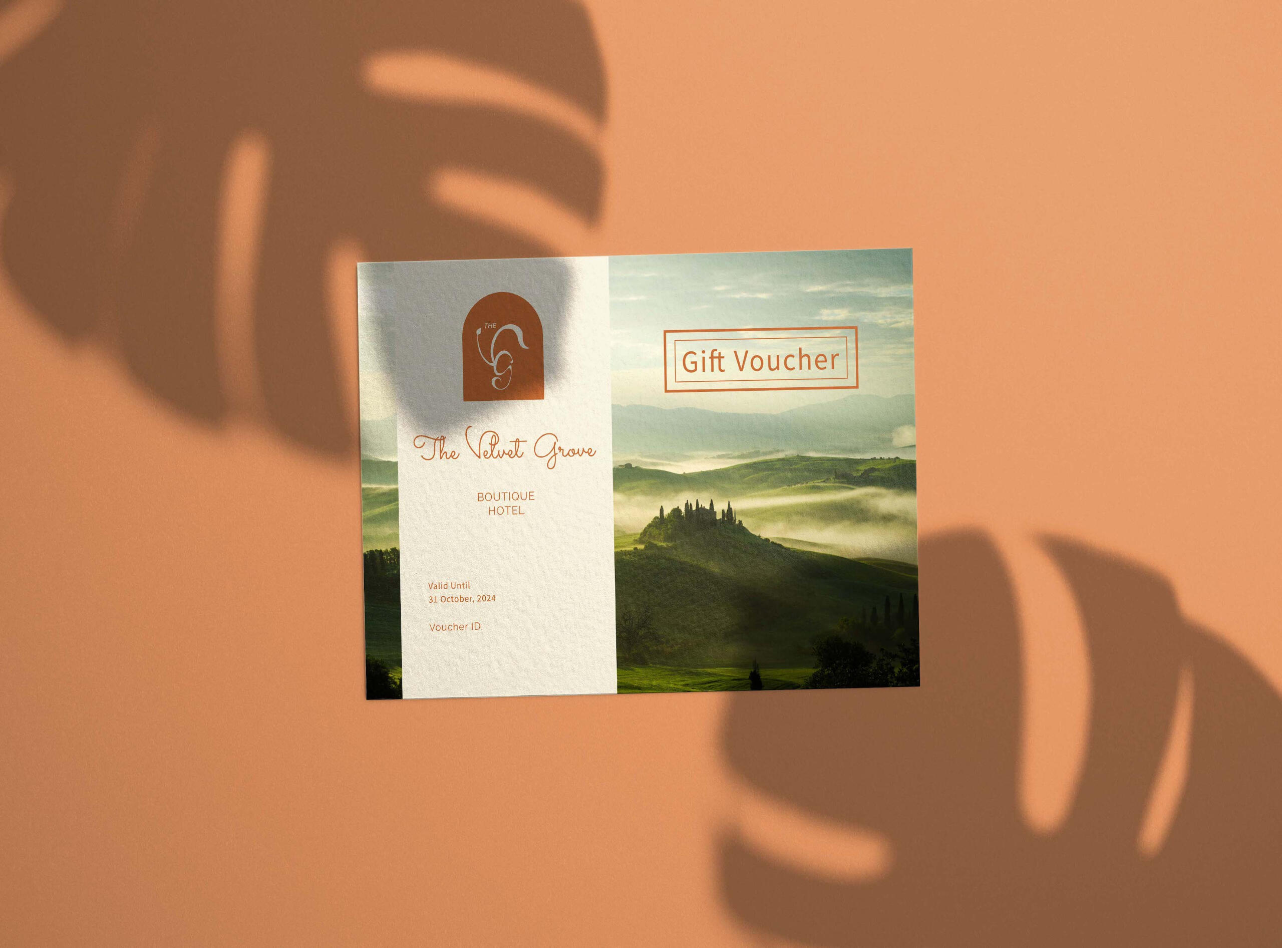 This is a self-initiated branding project for The Velvet Grove, a boutique retreat nestled in the heart of Tuscany. The brand identity captures the serenity and simplicity of the Italian countryside—where rolling hills, sun-drenched vineyards, and rustic architecture evoke a sense of effortless beauty. The logo design blends organic, wavy typography with a subtle leaf element, symbolizing the connection to nature and tranquility that defines the retreat. It is framed within a French window shape, evoking the timeless beauty of classic villas, offering a window into a world of calmness and peaceful escape.The design approach embraces a natural, understated elegance, using a warm, earthy color palette inspired by terracotta, olive groves, and golden wheat fields. These colors create a sense of warmth and calm—qualities that are at the heart of The Velvet Grove experience. In addition to the logo, I designed vouchers and toiletries packaging, ensuring each piece aligns with the brand’s commitment to nature.
